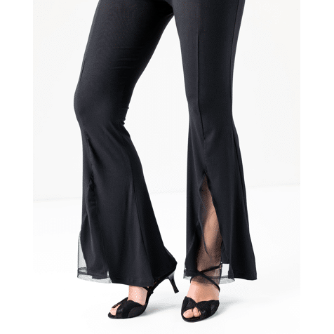 - Dansbroek voor latin en ballroom met mesh-inzetstukken en beenopening