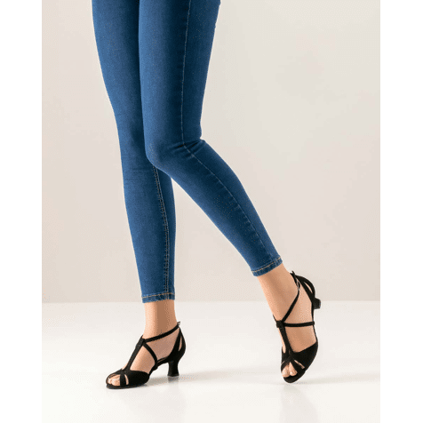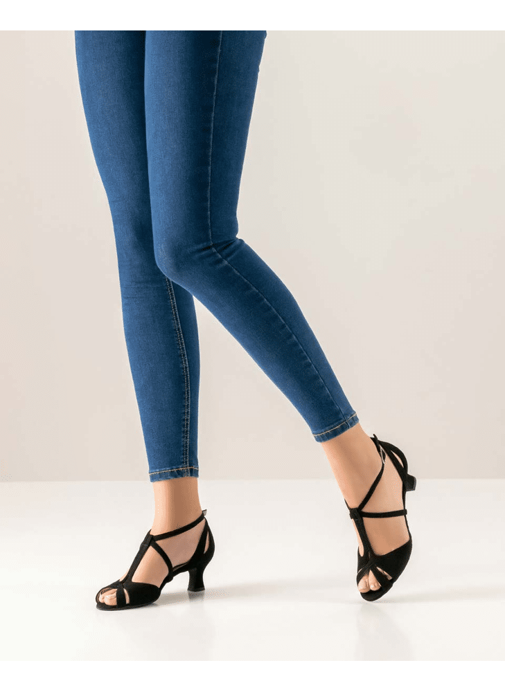- Ongeëvenaarde dansschoen met T-bandje, een filigraan voorpand en een prachtig gevormde hak.
