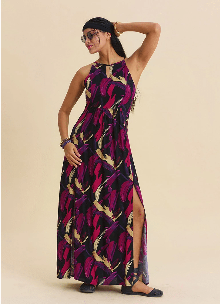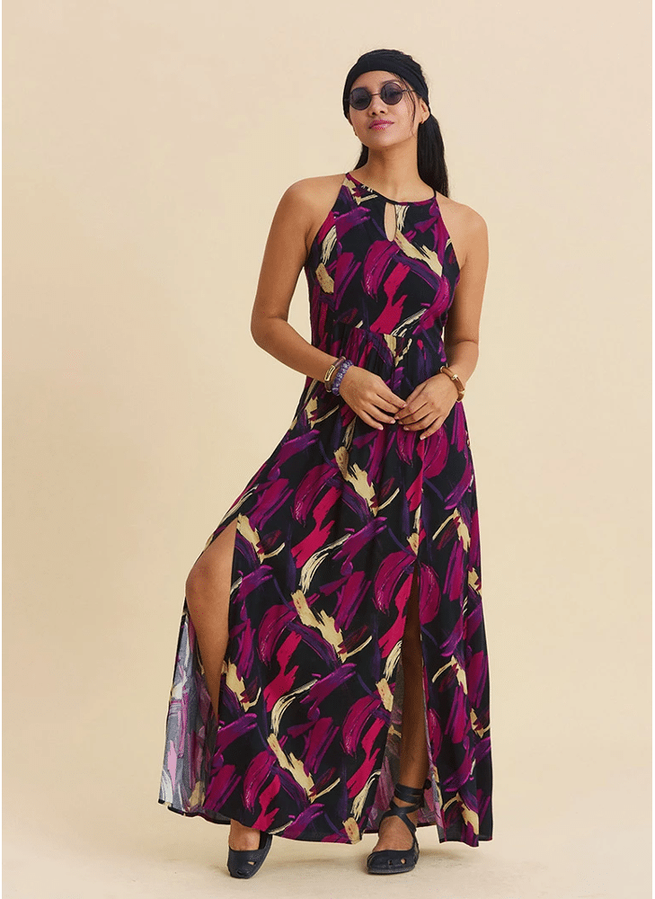 Lange jurk Indah met halternek